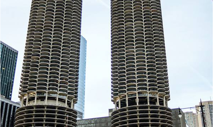 馬里納城因其外形酷似玉米棒,因此俗稱玉米大樓,并成功的成為了芝加哥市的地標(biāo),大量出現(xiàn)在相關(guān)影視作品、宣傳畫冊中。這座綜合性建筑,包含兩座61層、高179米的住宅大廈,具有“城中城”的獨(dú)特設(shè)計。它里面包含了餐廳、劇院、保齡球館以及可容納700艘小船的碼頭。