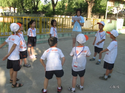 圖片展示的是參加北大心航線心智成長訓練營的小學生們,他們在老師的帶領下做游戲和學習,安排的很多活動既有趣又有意義。