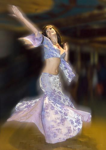 接著上場(chǎng)的是令人眩目的蘇菲舞。男舞者的服裝色彩極為鮮艷,隨著樂聲,他們開始一輪輪360度旋舞,仿佛隨風(fēng)轉(zhuǎn)落的五色花朵,炫乎其技,魅乎其神。這真是一個(gè)奇妙的夜晚,無法想象它屬于宗教氛圍濃厚的開羅。開羅的夜色并不華麗,但這條淌滿歌舞的長(zhǎng)河卻流動(dòng)著讓眾生顛倒的無盡神韻。