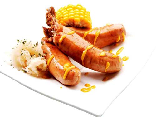 香腸可謂是德國(guó)菜肴的代表作,不下百種的德國(guó)香腸更是吸引著世界各地美食家的目光。它主要原料從豬肉到牛肉,從動(dòng)物到蔬菜,包括培根肉、小牛肉、牛奶和洋蔥末,甚至于豬和牛的內(nèi)臟、舌頭等(這一點(diǎn)與東南亞國(guó)家的習(xí)俗頗為相似)。另外,再加入相當(dāng)多的鹽、胡椒及豆蔻等香料。