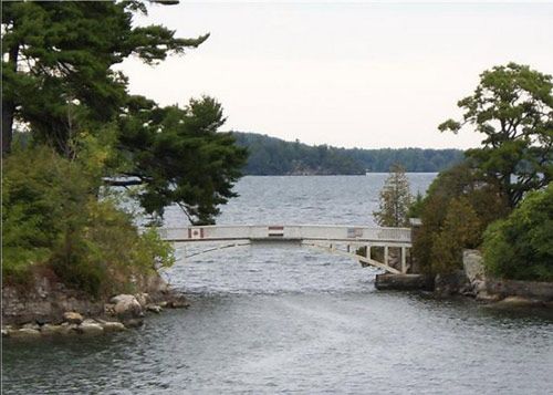 在千島湖上,一座連接美國和加拿大的國際大橋橫跨美加兩國的邊境,大橋宛如一條天然彩虹,為千島湖增加了幾分嬌艷。橋的中央就是兩國的分界,上面有無人值守的海關。