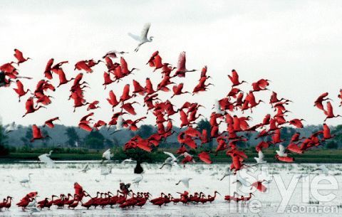 這片神奇的土地分為雨季和旱季。每到雨季,這里就變成了一望無(wú)際的海洋,此時(shí),你可以邊乘船在植物稀少的水面上自由行走,邊欣賞無(wú)數(shù)只聚集在高地上的珍奇動(dòng)物。然而,旱季才是來(lái)這里觀賞的最佳時(shí)節(jié)。每到旱季,整個(gè)濕地的水量就會(huì)急劇下降,形成一個(gè)個(gè)形狀各異的湖泊和一條條涓涓細(xì)流,各種鳥(niǎo)類也會(huì)飛到退水的地區(qū),搶食地面上留下來(lái)的各種貝類等食物,其中既有世界上最袖珍的鳥(niǎo)類——蜂鳥(niǎo),也有號(hào)稱鳥(niǎo)中之王的長(zhǎng)達(dá)140厘米的大喙巨鸛。你若在此時(shí)來(lái)到潘塔納爾,一定不敢相信自己的眼睛——無(wú)論是地上、樹(shù)上還是天上,到處都是成群結(jié)隊(duì)的五顏六色的飛鳥(niǎo),還有各種色彩斑斕的蝴蝶點(diǎn)綴其中,整片濕地都變成了一幅美麗的畫(huà)卷!站在這里,你仿佛置身天堂,唯一能做的,就是小心翼翼地屏住呼吸,讓眼前這份令人眩暈的如夢(mèng)幻一般的美景持續(xù)得久一點(diǎn),再久一點(diǎn)。