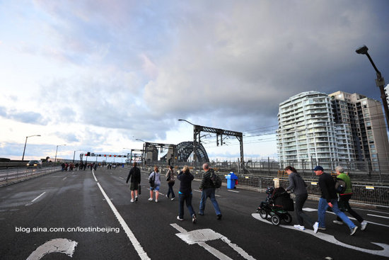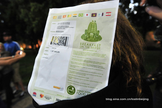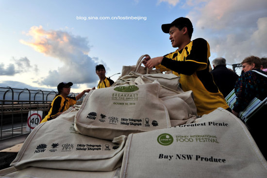 看見了吧?大橋封橋,鋪上草坪,俺們再鋪上毯子,齊了。這個早餐可以在網(wǎng)上報名,到時候抽簽決定誰獲得這個免費早餐的機會,當(dāng)然也可以電話預(yù)約。去年是第一次,今年是第二次,也是為期一個月的悉尼美食節(jié)的一項最具魅力的活動。