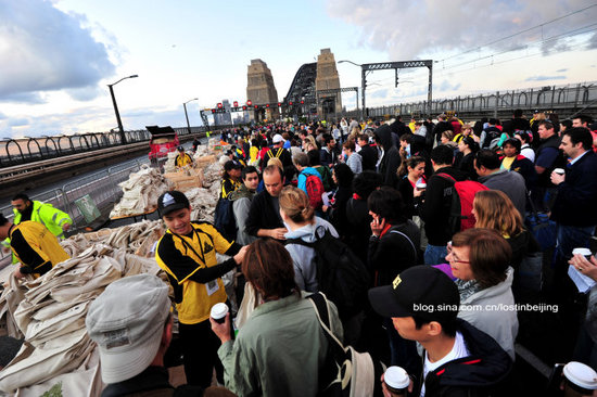 今天是2010年10月10日,俺們的早餐是在悉尼海港大橋上吃的,呼啦啦地有6000人一起猛造!