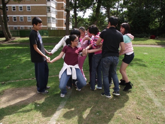 相信大家對(duì)這個(gè)游戲并不陌生~一群人手拉手圍成一個(gè)圈,然后孩子們會(huì)隨意的繞來繞去,經(jīng)過一系列復(fù)雜的動(dòng)作后,你會(huì)看到一團(tuán)麻花~~~汗!這個(gè)游戲的任務(wù)就是需要大家齊心合力解開這個(gè)大麻花,過程中不許撒手喲~~!非常考驗(yàn)團(tuán)體默契的游戲喲~為了增加趣味性,我們引入了競(jìng)爭(zhēng)機(jī)制~~兩組比賽哈哈~!好啦,介紹到此結(jié)束,看圖吧~!!