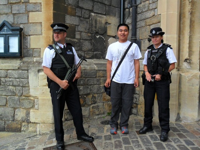 男警察完全不配合嘛~!嘿嘿,我比警察還高呢~~