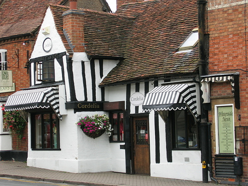 斯特拉夫德在曼城與牛津之間,是典型的英國南部古鎮(zhèn)。遠(yuǎn)望古鎮(zhèn),在丘陵起伏的綠色原野上,奔來一片濃綠的島嶼,濃綠襯托下,遠(yuǎn)近相連的陡尖的屋頂泛著陳年葡萄酒的殷紅。亮麗中飽藏著深沉的底蘊(yùn)。