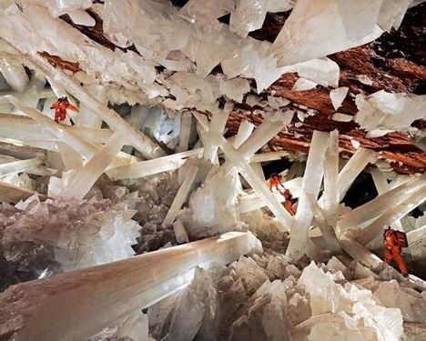 2000年,幾名礦工在深達1000英尺(約304.8米)的地下發(fā)現(xiàn)了這個水晶洞穴,由此證明了仍然有許多驚人的自然奇觀是人類還沒有發(fā)現(xiàn)的。水晶洞穴位于墨西哥奇瓦市附近的奈卡礦山,洞里有許多巨大的水晶體,向四面八方伸展著,其中有些是史上發(fā)現(xiàn)最大的晶體,它們位于古老的斷層上。洞穴中的水差不多有五十萬年了,它們?yōu)榫扌退У男纬商峁┝肆己玫沫h(huán)境。