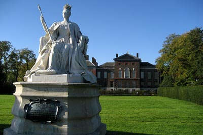 肯辛頓宮曾是威廉三世到喬治二世等君王的宮邸,維多利亞女王就出生在這里。它的外觀看起來很不起眼,但里面很氣派。肯辛頓宮的一部份對(duì)外開放參觀,包括維多利亞女王受洗的房間和1760年迄今的皇室宮廷服飾展覽?闲令D宮提供免費(fèi)的錄音導(dǎo)覽設(shè)備,每個(gè)房間都有詳盡的解說,其中豐富的黃室服飾收藏(royal dress collection)讓人大開眼界。其中有瑪麗女王的結(jié)婚禮服、伊利莎白二世女王的家居服和禮服,當(dāng)然還有許多華麗極致的配件。此外國王廊(king's gallery)的17世紀(jì)繪畫作品也值得一看。展品中還有戴安娜的服飾,結(jié)婚前的打扮和結(jié)婚時(shí)的婚紗等。
