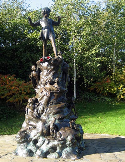 肯辛頓公園(kensington garden)從前是王家園林,現(xiàn)在與海德公園相連向公眾開放。公園雅致優(yōu)美,有大片草地,有許多修剪得很有藝術(shù)性的樹木。里面有很多長靠椅供游人休息,還有很大的湖面,能看到水禽、鴿子和小松鼠。公園被流經(jīng)兩處的九曲湖分成南北兩岸,南岸有著名的小說人物彼得·潘(peter pan)的塑像,他面朝湖水,兩腿叉開,一手翹起短笛,一手召喚更多的孩子同來玩耍。北邊則是肯辛頓宮(kensington palace),曾經(jīng)的戴安娜王妃寢宮所在,至今王宮門前仍有民眾不時(shí)獻(xiàn)上花束憑吊。