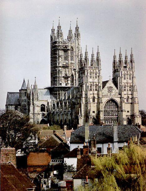 聲名遠(yuǎn)揚(yáng)的坎特伯雷大教堂規(guī);趾,長(zhǎng)約156米,最寬處有50米左右,中塔樓高達(dá)78米。這座大教堂可以追溯到奧古斯汀,后來(lái)又經(jīng)歷了不斷的續(xù)建和擴(kuò)建,其中中廳建于1391年到1405年間,南北耳堂建于1414年到1468年,三座塔樓也分別建于不同時(shí)期。高大而狹長(zhǎng)的中廳和高聳的中塔樓及西立面的南北樓表現(xiàn)了哥特建筑向上飛拔升騰的氣勢(shì),而東立面則表現(xiàn)出雄渾淳厚的諾曼風(fēng)格。教堂東端,設(shè)有一個(gè)巨大的地下室,用以紀(jì)念圣托馬斯,亨利四世、愛(ài)德華三世之子以及百年戰(zhàn)爭(zhēng)中馳騁疆場(chǎng)威震法蘭西的黑太子等名人也都安葬在教堂里。這里還陳列著他們用過(guò)的盔甲、盾牌和其它兵器。