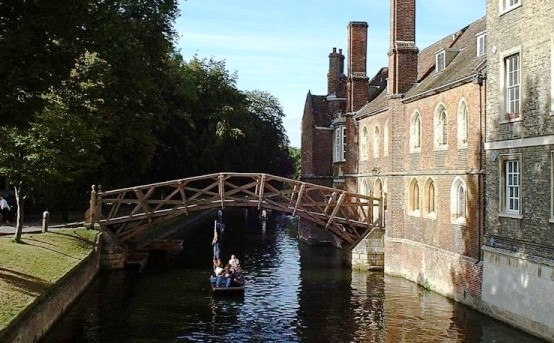 走進(jìn)皇后學(xué)院,可以見(jiàn)到一座古老的木橋橫跨于劍河之上,這就是舉世聞名的數(shù)學(xué)橋,又叫作牛頓橋。相傳牛頓采用數(shù)學(xué)和力學(xué)的方法設(shè)計(jì)并建造了這座橋,橋上沒(méi)有用一顆釘子。