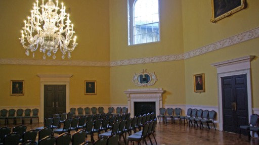 因?yàn)閳A形廣場等地在二戰(zhàn)中遭到德軍打擊,現(xiàn)在的集會(huì)廳是對(duì)原建筑修復(fù)后的模樣,它與服裝博物館連通,收藏著18世紀(jì)以來的許多精致的官方會(huì)議室用品以及室內(nèi)雕塑和裝飾品,廳內(nèi)的豪華擺設(shè)也無不透露著當(dāng)年的輝煌。