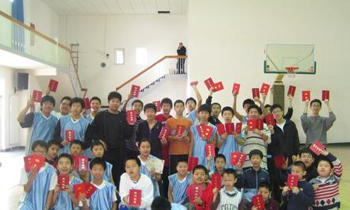 國內(nèi)冬令營講解標(biāo)準(zhǔn)的投籃動(dòng)作應(yīng)該是一手扶球,另外一手發(fā)力,籃球投出去的線路最好是一條拋物線。
