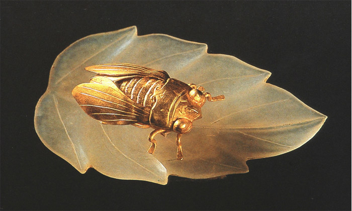 我們無從揣測,這兩種氣質(zhì)完全不同的材質(zhì)是如何結(jié)合在了一起,它們一個光芒外露,一個光華內(nèi)蘊(yùn),一個奢華,一個低調(diào),一個絢爛至極,一個又歸于平淡?;蛟S是人的天性中就有好上加好、精益求精的愿望,夢想在兩種名貴之物的疊加中達(dá)到奢華的頂峰;或許是出于對殘損的玉石的憐惜,讓流動多變的黃金來彌補(bǔ)玉的缺憾......