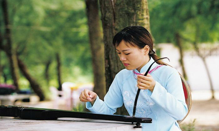 越南的獨(dú)弦琴只有一根弦,右手彈,左手控制弦的松緊,松則音低,緊則音高,能演奏出優(yōu)美的琴聲。