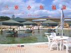 小魚溫泉 小魚溫泉的前身過去是個爛泥塘,里面有各種不同的野生魚。九二年某公司到此開發(fā)溫泉,而那次失敗的開發(fā)使大量的溫泉水直流稻田,離溫泉出水口較近野魚被燙死。而約五六年之后,村企業(yè)農(nóng)民老總劉宏枝和村民們驚奇地發(fā)現(xiàn)這里又出現(xiàn)了一種小魚,長相類似以往的野魚,但體積小了幾十倍,奇特的是它們能在溫泉水里生存。經(jīng)反復(fù)調(diào)查研究,得知這是一種能在43度以下溫泉里存活的小魚,當(dāng)?shù)卮迕穹Q為“親親魚”。這些小魚不怕生人,喜歡親啃人體上的一些死皮屑和毛孔中的排泄物,對人體無害,它們嘴里的分泌物能起到殺菌消毒的作用,它們的“親啃”還可刺激人表皮神經(jīng),起到良好的保健作用。