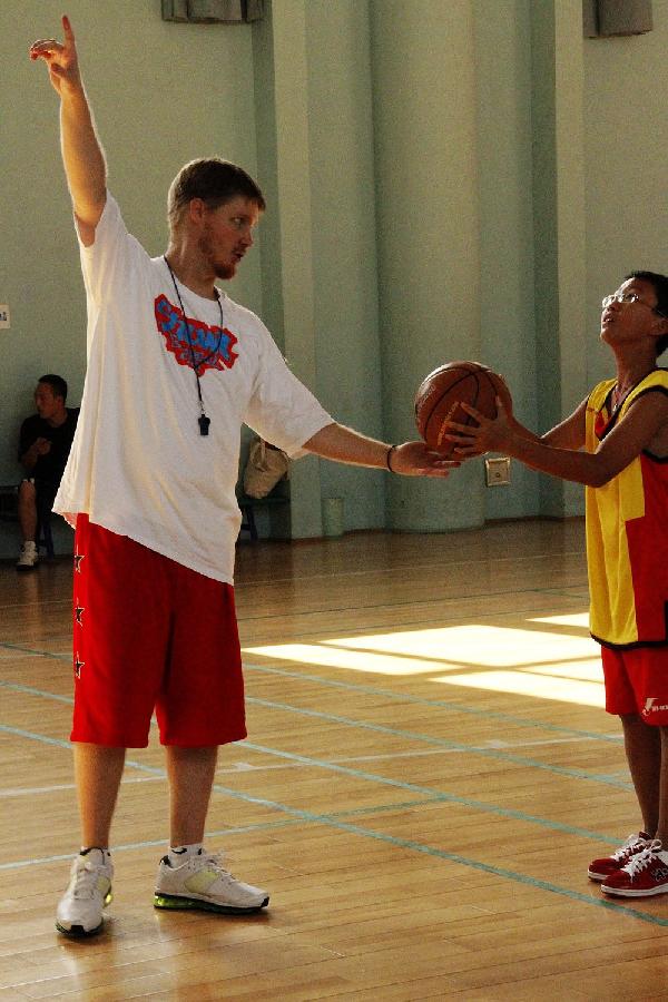 哈林秀王冬令營教練指導學員投籃