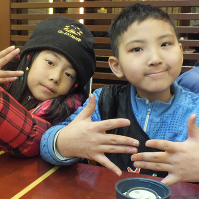 8:30印手印并在手印上進(jìn)行簽名(色彩的選擇與搭配)