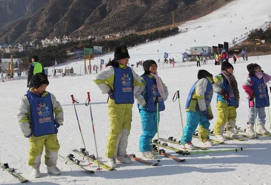 下拖牽涉及到一個安全問題,如何能自如地下拖牽并滑向山下。因為初學者在有坡度地方下不好的話,容易造成順著拖牽道倒著滑下,這樣會與后邊的人員相撞。再者容易在原地滑倒,造成拖牽道堵塞。在下拖牽時,首先選擇坡度緩一些地方,在下拖牽的同時打開板尖,雪板形成八字狀站住。然后移出拖牽道。