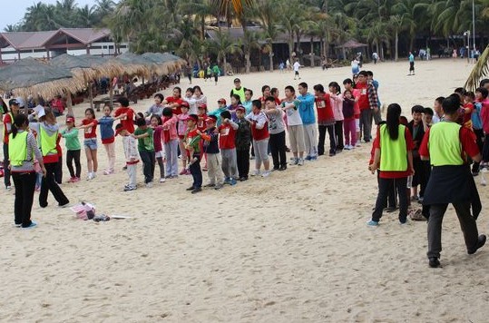 在沙灘上我們修建了形狀各異的沙雕城堡,小動物的圖案,還玩了好多游戲,我們玩得很開心。中午我們在海邊餐廳用餐,飯菜很可口,我們吃的津津有味。下午我們來到了亞洲第一灣——亞龍灣。我們在沙灘上游玩,留下我們可愛的足跡