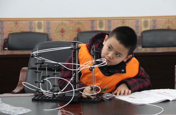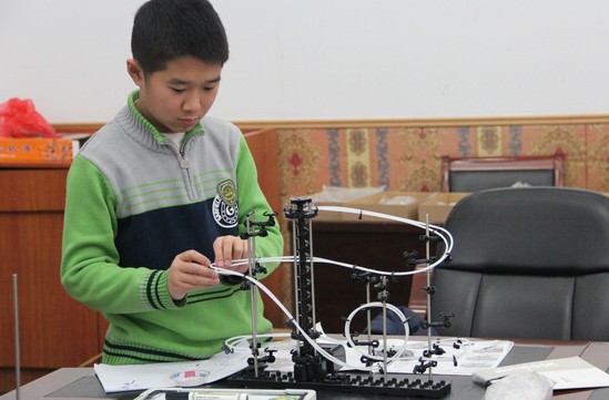 今天,我們在昨天安裝模型的基礎上,又加上了另外一條軌道。雖然過程和昨天大致相同,但要求卻更加復雜。內(nèi)外軌的高低程度,軌道的傾斜程度,360度軌道的大小,這些細小的問題都關(guān)系到模型運行的成功。在老師的耐心指導下,我們都成功的完成了自己的模型!完成的那一刻,心里樂開了花