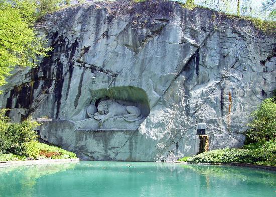 獅子紀(jì)念碑(lion monument)是盧塞恩數(shù)一數(shù)二的雕刻作品,一支箭深深地插進(jìn)了瀕臨死亡的雄獅背上,獅子面露痛苦的神情,前爪按盾牌和長矛,盾牌上有瑞士國徽。這是為了紀(jì)念1792年法國大革命,暴民攻擊法國杜樂麗宮(tuileries)時,為保護(hù)法王路易十六及瑪麗王后而死的786名瑞士軍官和警衛(wèi)所建的紀(jì)念碑,意在祈求世界和平,碑的下方有文字描述了此事件的經(jīng)過。美國小說家馬克吐溫曾贊頌盧塞恩的石獅是“世界上最哀傷、最感人的石雕”,每年吸引了許多游客來此觀看。