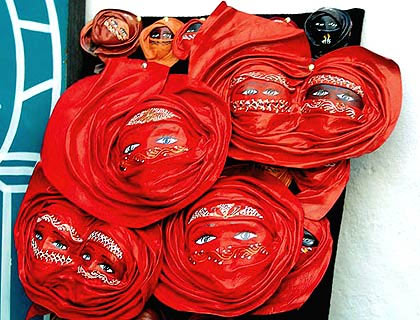 今天,如果女游客喜歡,可以在摩洛哥的集市上找到專門的攤位,把自己的手、腳用散沫花染料繪上圖案,花紋可以保持一周。戴面紗的女?dāng)傊骱軈柡Γ浀檬孪日f(shuō)好價(jià)。這些染料,市場(chǎng)上也可以買得到。