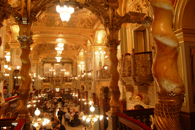 紐約宮殿是由紐約保險(xiǎn)公司委托hauszmann alajos,korb flóris,giergl kálmán和steuer sándor的設(shè)計(jì)而建立的。原來(lái)是一家咖啡廳連鎖店的一家,符合著“世界上最漂亮的咖啡廳”的名義而建筑的。在窗戶上有16個(gè)魔鬼農(nóng)牧神(“el ashmodai”咖啡和思考的古老保護(hù)神),它們都是燈托,這樣來(lái)更加的濃厚紐約咖啡廳的感受。這座美麗的建筑是按折衷派建筑的,還具有意大利文藝復(fù)興和巴洛克風(fēng)格。極為豪華的家具是按照歷史折衷派而設(shè)計(jì)的。到處都是大理石,銅,絲綢和絲絨,因此多次有人拿它和路易二世的宮殿相比。
