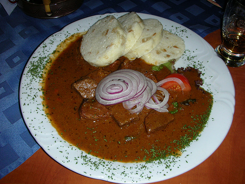 捷克最有名的美食是gulas是一種燉牛肉。而這種燉牛肉的方法也很復(fù)雜,他要按照時(shí)間添加二十三種不同的調(diào)味料。整個(gè)制作過(guò)程要大約四個(gè)小時(shí)。 甜甜圈 (kablihy)、蘋(píng)果派 (jablkovy zavin) 和包水果的捷克餃子 (ovocne knedliky),都是不錯(cuò)的甜點(diǎn)。