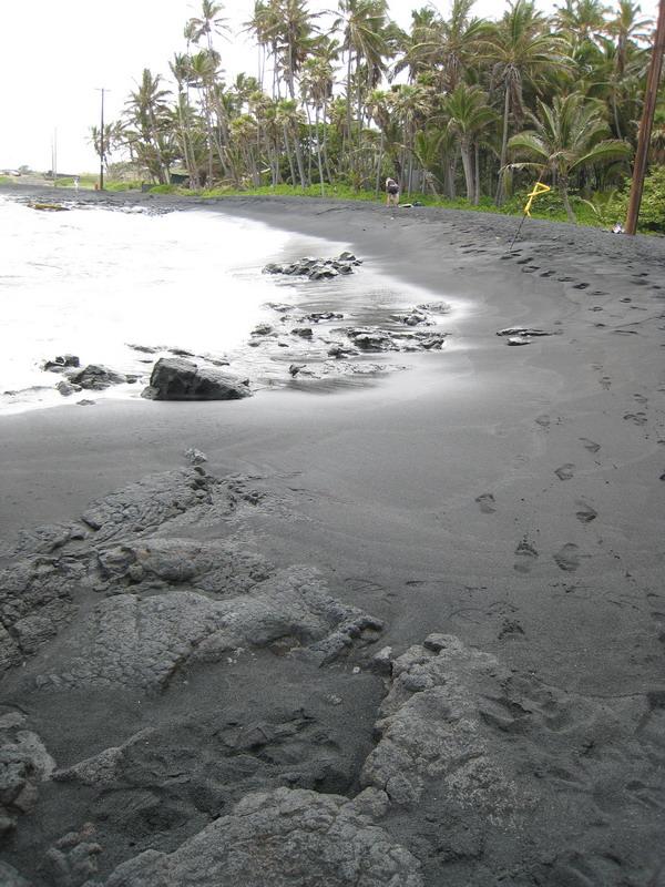 黑沙灘的確是純黑色的沙地,有點(diǎn)粗糙,但近海的地方沙還是非常細(xì)。黑色的海和沙,加上烏云密布,說(shuō)是魔鬼的領(lǐng)地一點(diǎn)也不過(guò)分。游客初到這里會(huì)感覺(jué)黑漆漆的一片,乍一眼望去,連海水也是黑的,其實(shí)不然,因?yàn)楹┦呛谏模谏骋r的海水也黑了。仔細(xì)看海水還是藍(lán)色的,沙上的椰樹(shù)和一些綠色植物同這片黑色形成了鮮明的對(duì)比。經(jīng)常會(huì)有一些海歸爬到海灘上,能在烏黑烏黑的沙灘上看到蠕動(dòng)的白色海龜也會(huì)讓人激動(dòng)很久。