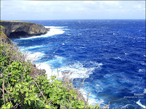藍(lán)洞(the grotto)在塞班島的東北角,是塞班最著名、難度高的潛水地點(diǎn),這里?煽吹綕摽蛡?cè)诖司毩?xí)下水。東北角的地質(zhì)是珊瑚礁形成的石灰?guī)r,藍(lán)洞最神奇之處,就是石灰?guī)r經(jīng)過(guò)海水長(zhǎng)期侵蝕、崩塌,形成一個(gè)深洞,水深達(dá)到17公尺,最深處達(dá)到47公尺,藍(lán)洞與外海有3條相連的水道,光線(xiàn)從外海透過(guò)水道打進(jìn)洞里,藍(lán)洞水池內(nèi)能透出淡藍(lán)色的光澤,相當(dāng)美麗。