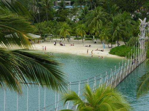 圣淘沙四面朝海,被分成西樂(lè)索(siloso)、巴拉灣(palawan)和丹戎(tanjong)三個(gè)海灘。西樂(lè)索海灘以沙灘排球和戶外活動(dòng)如皮劃艇、滑水板、山野自行車(chē)、曲棍球等聞名于世;巴拉灣海灘位于圣淘沙的中部,灘上有一座懸掛橋通向一個(gè)胰島,據(jù)說(shuō)那里是亞洲大陸的最南端,也是亞洲離赤道最近的地方;丹戎海灘是一個(gè)新月型海灘,時(shí)常用于舉辦大型活動(dòng),海灘上椰樹(shù)高聳,隨風(fēng)婆娑,頗具南洋風(fēng)情。圣淘沙海灘風(fēng)光旖旎,環(huán)境舒適,海水清澈透亮沙灘細(xì)膩柔滑,每年都吸引了約500萬(wàn)人來(lái)此觀光旅游。