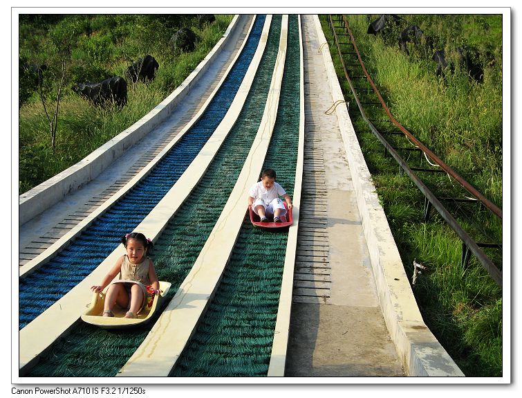 滑草雖然沒有蹦極那樣驚險, 但它的刺激性、挑戰(zhàn)性和開心效 果決不亞于蹦極,因而成為一項深受廣大青少年、中老年人喜愛的、新穎的體育旅游項目。當您乘坐滑車, 從陡坡滑草道上由上而下急 速下滑,頓時,只聽風在耳邊呼嘯, 滑道兩邊的果樹飛速閃過,空氣似乎凝固了,心好像要從胸口跳出來似的……幾秒鐘之后, 滑車 平穩(wěn)的停下來,整個滑草的旅途可謂是有驚無險, 人的膽量和勇氣也經(jīng)歷了一次極限的挑戰(zhàn)。 地址:千島湖中心湖區(qū)梅峰島。