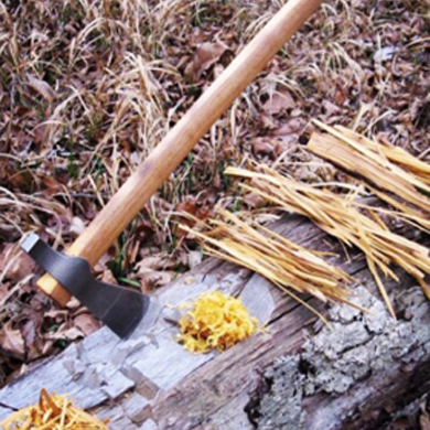 鋸木頭,使用小刀削制刨花和燃屑。