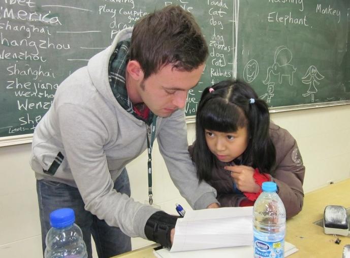 帥氣的外教輔導我們功課