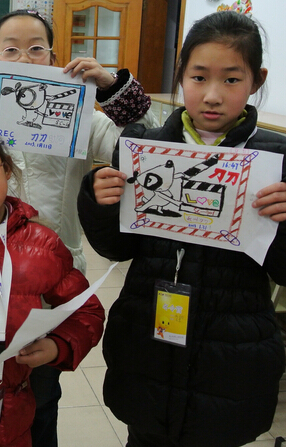 上海新東方泡泡少兒興趣課堂上大家互相展示自己的創(chuàng)意。