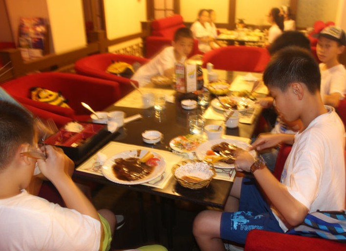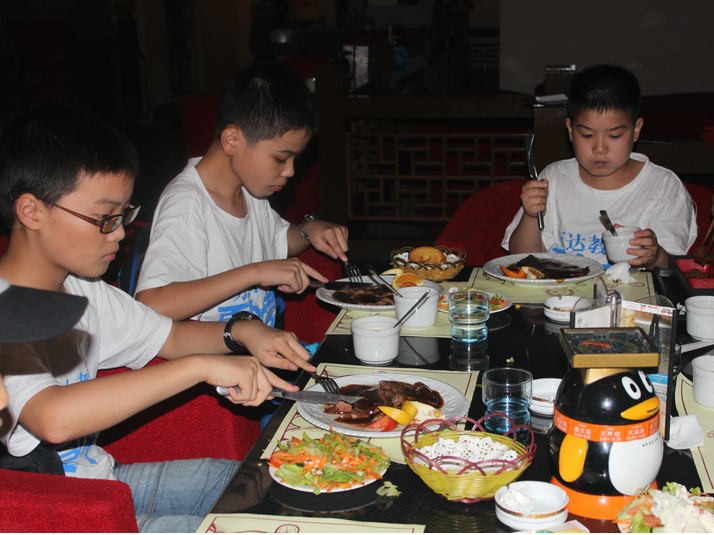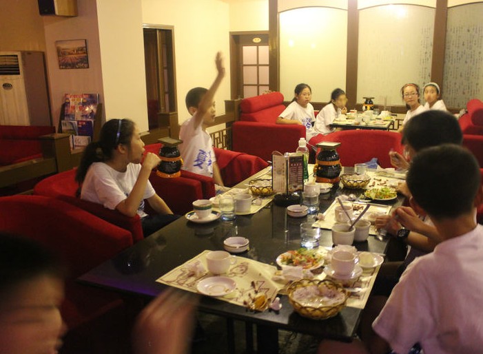 游玩西湖后的饕餮大餐!大家都吃得津津有味呢,不過吃的同時要記得老師教的西方用餐禮儀哦
