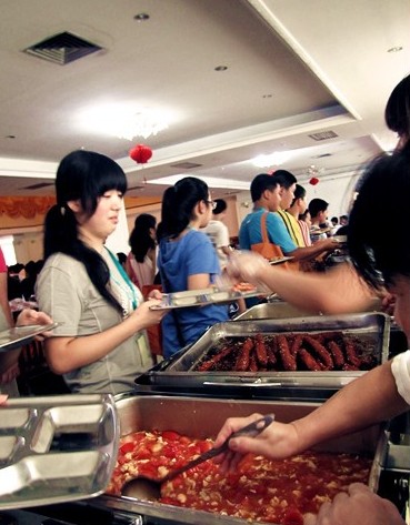 同學(xué)們在餐桌上真是樂不可支啊。肯定是看到今天的午飯都是自己喜歡吃的菜了。此時此刻,你還會想起家里媽媽做的飯菜嗎?