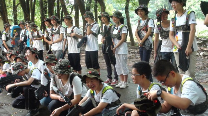 學(xué)生們在教練的帶領(lǐng)下開始學(xué)習(xí)槍械的用法,以及相關(guān)的戰(zhàn)術(shù)動作,比如說“發(fā)現(xiàn)敵人”“掩護(hù)我”等等。