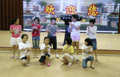 結(jié)束了分班測(cè)試,孩子們吃完豐盛的晚餐后,我們即將迎來快樂序曲——開營(yíng)晚會(huì)。在開營(yíng)晚會(huì)的第一個(gè)節(jié)目就是我們的小朋友準(zhǔn)備的舞蹈 小白船
