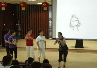晚會(huì)從自我介紹開(kāi)始,“口語(yǔ)二級(jí),所向無(wú)敵”,“語(yǔ)音基礎(chǔ),唯我做主”,“初銜二班,非同一般” 每個(gè)班級(jí)喊出的口號(hào)各有千秋而又朗朗上口,緊隨其后,大家還模仿兔斯基的經(jīng)典動(dòng)作和表情,頓時(shí)臺(tái)上臺(tái)下融為一片歡樂(lè)的海洋。