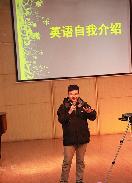 第二環(huán)節(jié)為才藝展示,選手們分別拿出自己的絕活進(jìn)行展示,歌曲演唱、英文繞口令表演、吉他彈奏等等。選手們?nèi)缤瑓⒓舆_(dá)人秀的達(dá)人們,紛紛用自己的方式演繹著自己,釋放著自己