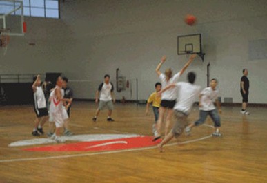 在我們的營活動(dòng)中,為了給學(xué)生學(xué)習(xí)英語增添樂趣,特別安排了籃球比賽活動(dòng),我們的英語外教也參加了。