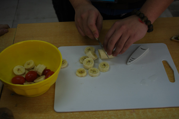 拍攝了學(xué)員們?cè)跔I(yíng)地制作美味沙拉
