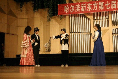 首先登場的英語話劇一下子抓住了觀眾們的注意力。演員們繪聲繪色的演出,特別是流暢優(yōu)美的英語發(fā)音,讓臺下的觀眾完全沉浸在了劇情之中。