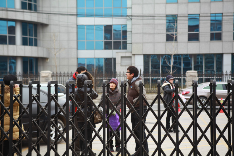 北京新東方酷學(xué)酷玩冬令營營地大門,老師在和家長們做溝通
