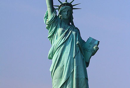 自由女神像(statueof liberty)正式名稱是“自由照耀世界之神”,它是美國(guó)國(guó)家的紀(jì)念碑。今天,它更加深入人心,成為全世界民主自由的象征。她造型宏偉,令人矚目。塑像拔地而起,高達(dá)152英尺(約46.32米),墊座89英尺(約27.127米),腰圍420英寸(約10.668米)。她那未露笑容的嘴有3英尺(約0.914米)寬。她的腳下殘留著許多打碎的腳鐐。她的左手持一標(biāo)有1776年7月4日的銘板,宣布自由的到來(lái)。
